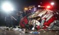 Photos from the scene showed a red helicopter on its side in the middle of the freeway as first responders tended to the injured. About two hours after the crash, a twisted, mangled helicopter lay upside down across the freeway. The aircraft was split down the middle, exposing its damaged interior, as CHP investigators used flashlights along the shoulder to search for debris.
