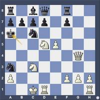 Here we have an example of Black playing the first moves well and achieving equality, but then he starts to go astray with the usual result. 1.e4 e5 2.Nf3 Nc6 3.c3 d5 4.Qa4 f6 5.Bb5 Nge7 6.exd5 Qxd5 7.0–0 Bd7 8.d4 e4? (the first mistake-best was 8...exd4 9.cxd4 Ne5) 9.Nfd2 Ng6 10.Bc4 Qa5?? (the second mistake-best was 10...Qh5) 11.Qb3 f5 12....