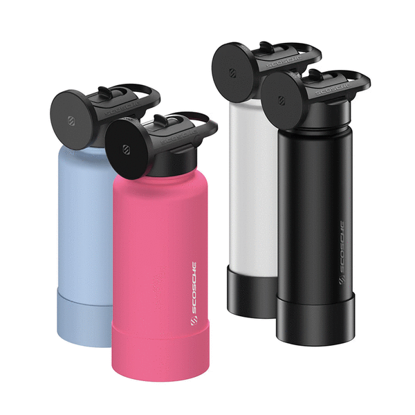 The LifeStraw Go Series features stainless steel tumblers, available in 18 ounces ($49.95), 24 ounces ($59.95) and 1 liter ($64.95). All the sizes are available in a variety of color choices. The stainless steel tumblers have a top-sided carry clip.